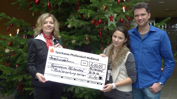 Schülerzeitung online – „Das finden wir super und unterstützen das Redaktionsteam gerne finanziell“, freut sich Jugendberaterin Melanie Beck bei der Scheckübergabe. „Jetzt kann ich immer die aktuellen Artikel lesen. In der gedruckten Schülerzeitung waren die Informationen längst Schnee von gestern.“