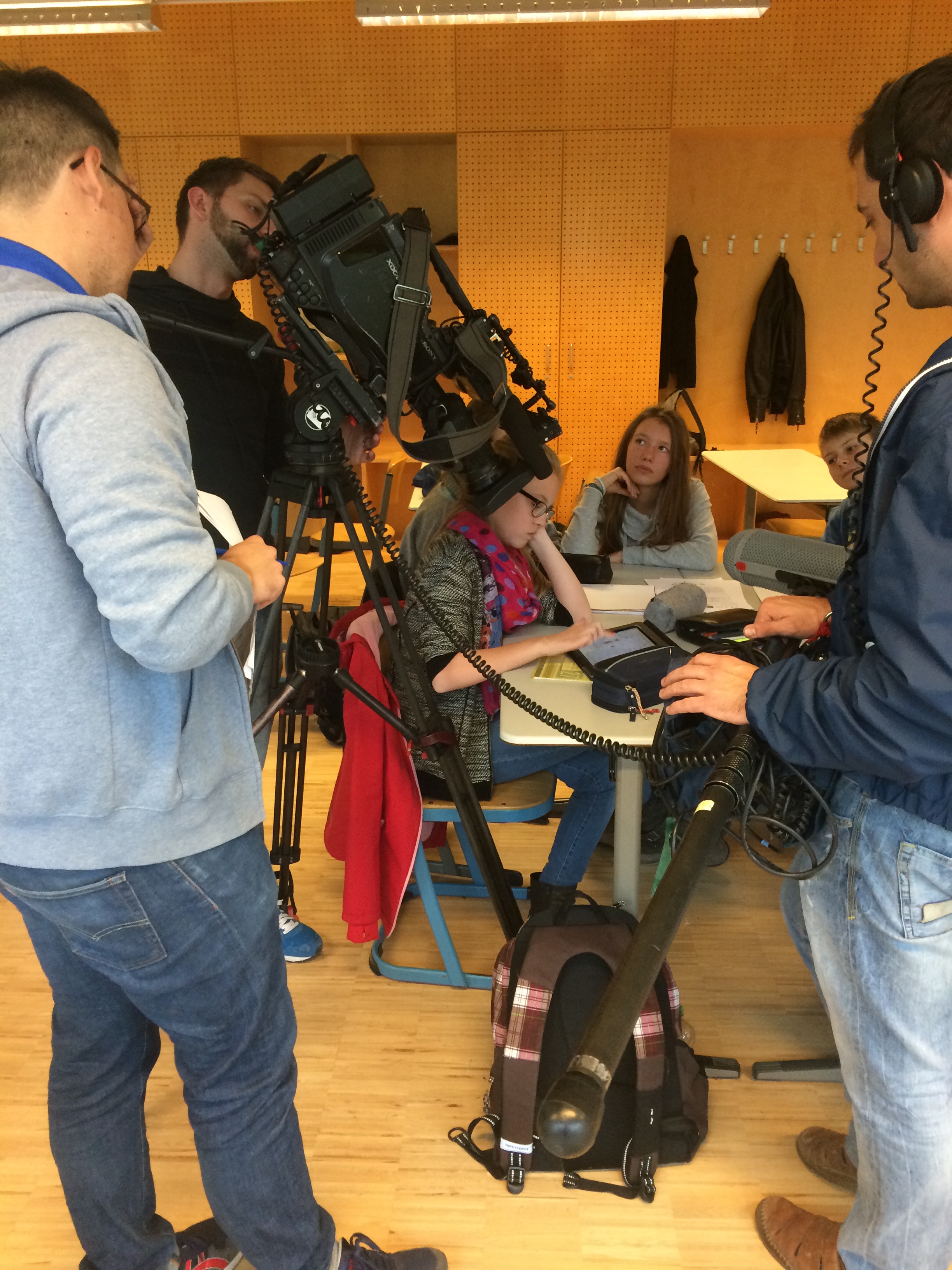Das mit Classcraft hat sich herumgesprochen, und zwar nicht nur unter den Schülern. Einigen von euch ist sicher nicht entgangen, dass die Schule vor ein paar Wochen Besuch von einem Reporter und zwei Fernsehteams hatte. Sie besuchten die Klasse 7b im Deutsch- und Englischunterricht von Herrn Jurgeleit, der mit der Klasse dieses Jahr Classcraft spielt. Was da alles passiert ist und wie der Reporter überhaupt auf die 7b aufmerksam wurde, könnt ihr auf der >>nächsten Seite<< nachlesen!