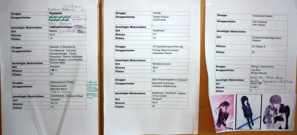 An den letzten Tagen vor den Sommerferien 2011 standen die Projekttage an. Der Blick auf die Liste versprach jede Menge interessante AGs mit unterschiedlichen Anforderungen und Ansprüchen. Der erste Tag lief relativ glatt über die Bühne, am zweiten Tag machte sich ein wenig Gegrummel breit. Wir wollten hier einige der AGs vorstellen, aber auch der Sache auf den Grund gehen, warum der zweite Projekttag nicht ganz so fröhlich ablief wie erwartet. Für beide Zwecke interviewten wir nicht nur ein paar der AG-Leiter, sondern auch die stellvertretende Schülersprecherin Barbara Petersen und wir spielten auch im Lehrerzimmer ein wenig Mäuschen, natürlich mit dem freundlichen Einverständnis der zitierten Lehrer.