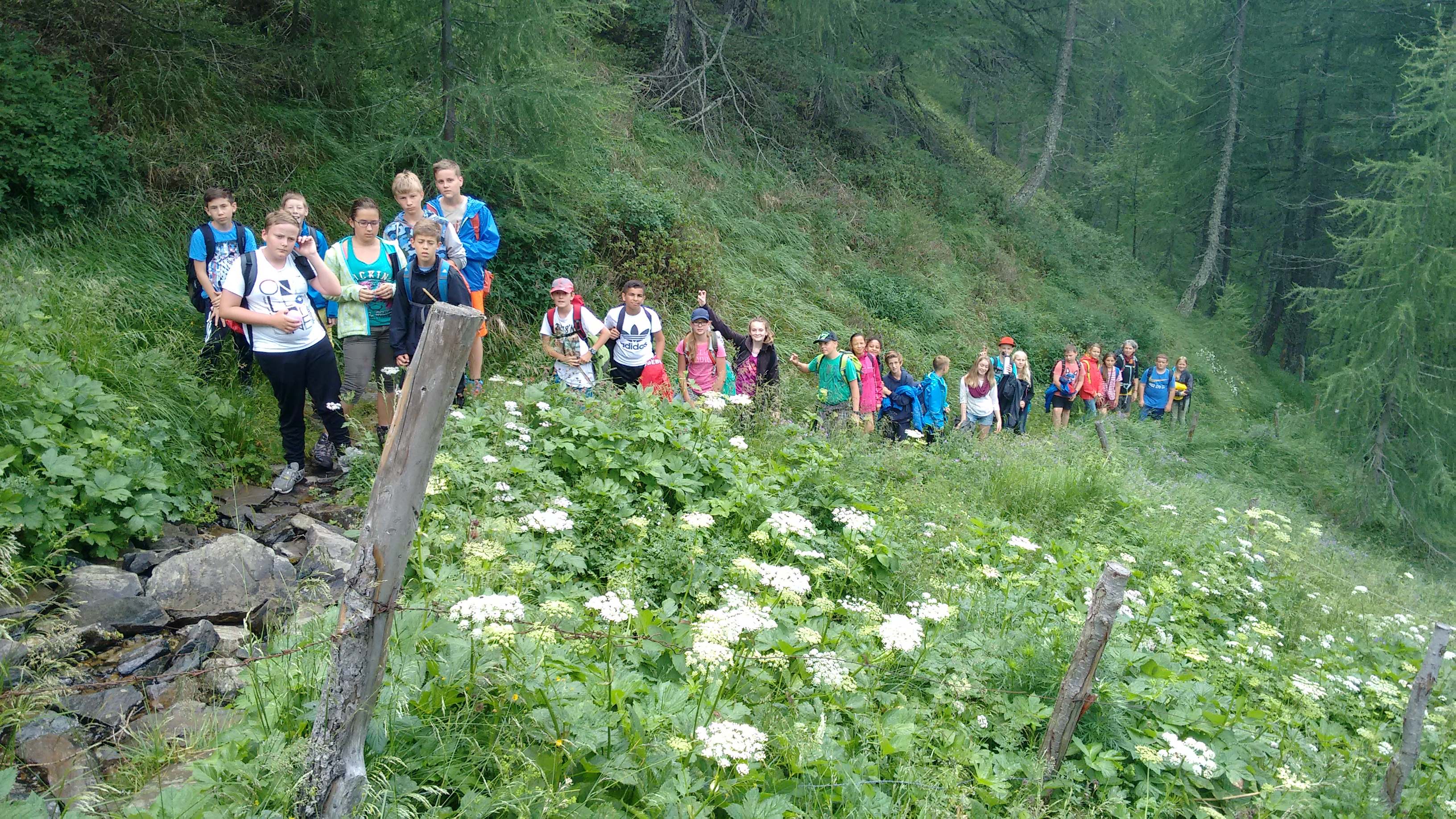 In einem Schlafraum suchten sich die Mädchen und die Jungen Schlafplätze, wo wir die Nacht verbringen konnten. Nachdem wir uns auf den Schlafplätzen ausgebreitet haben, bildeten wir drei Gruppen, um die Käserei der Wieserhütte kennenzulernen. Während die zweite Gruppe mit Theo in der Molkerei war, ging die erste Gruppe mit Frau Jäger und Herrn Golz zum Wasserfall am Ende des Tals.