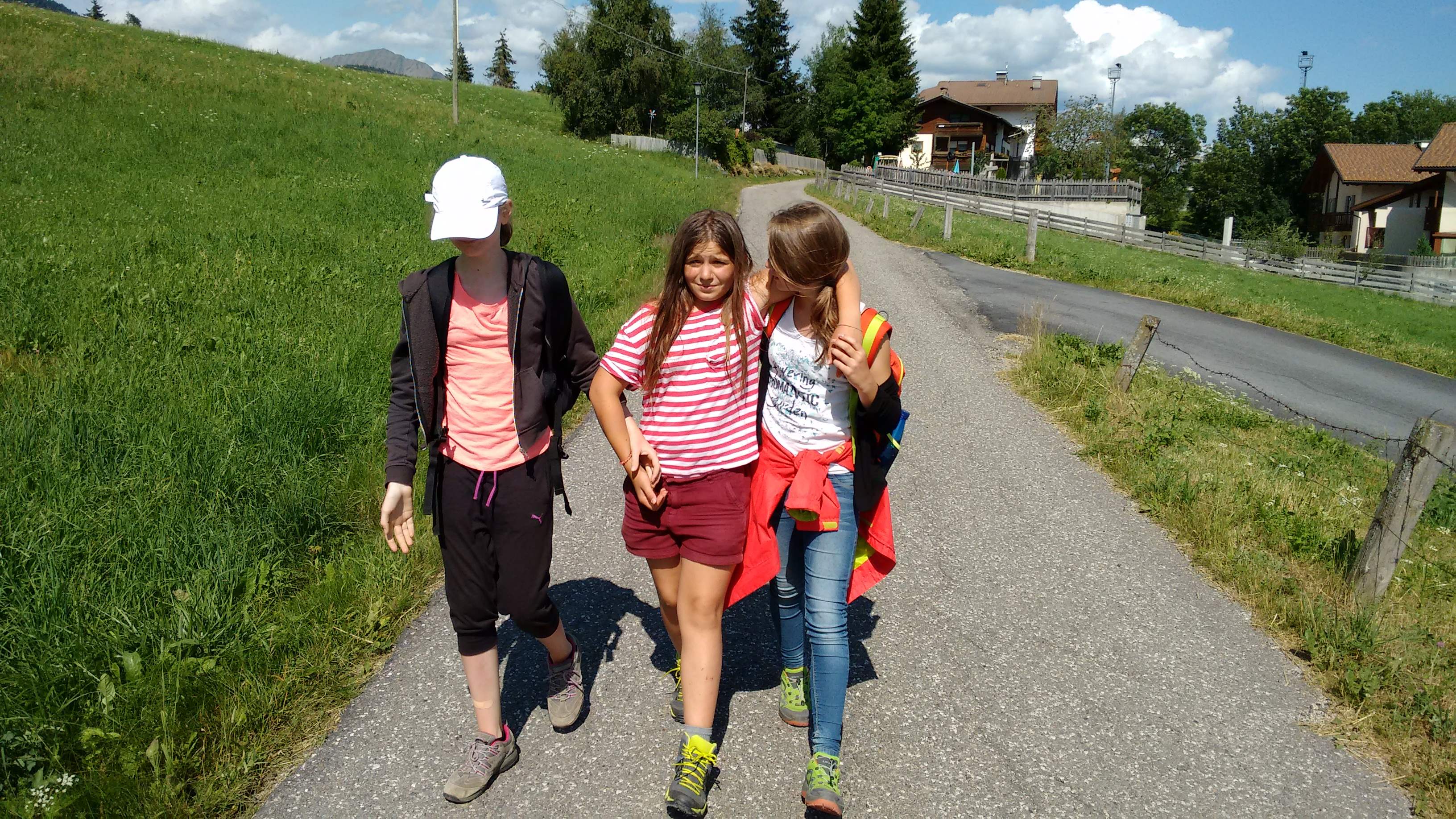 Wir gingen also den steilen und schweren Weg wieder hinunter und sahen, dass sich ein Schüler am Bein verletzt hatte. Also gingen wir zurück zur Wieserhütte. Dort fuhr Herr Golz den Verletzten zum Mühlsteiger Hof (unsere Unterkunft in Meransen) und kam nach gut 1 Std. zurück und wir wanderten auf dem Landweg zurück nach Meransen.