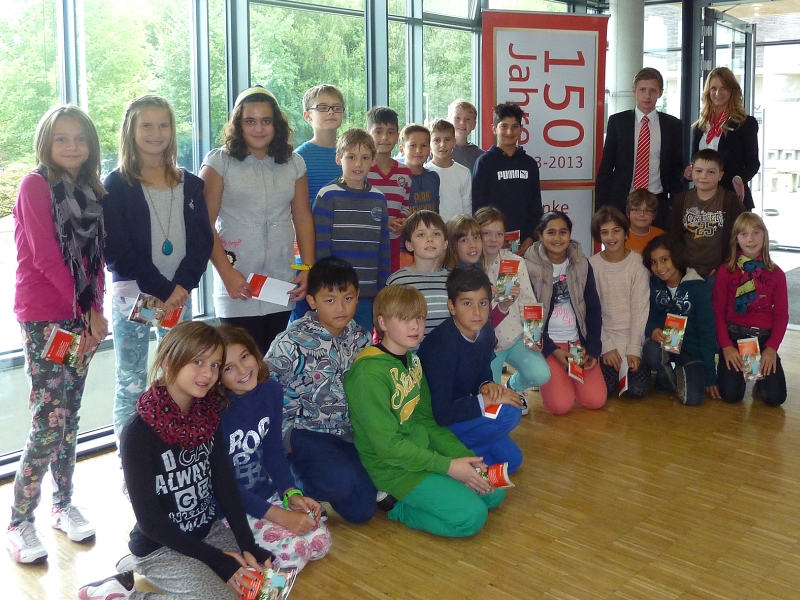 „Das verkürzt die Wartezeit bei der Essensausgabe erheblich, weil die Entscheidungsphase für ein Produkt, das Geld bezahlen und das Wechselgeld entgegennehmen entfällt“, wissen die Sparkassenauszubildenden und empfehlen, den Essensbeleg schon frühzeitig abzuholen. Dafür stehen Terminals sowohl im Gymnasium als auch in der Realschule bereit. „Das geht ja kinderleicht!“, resümierten die Schüler, nach dem praktischen Üben in Kleingruppen. „Das geht ja kinderleicht!“, meinten die Schüler. 🙂