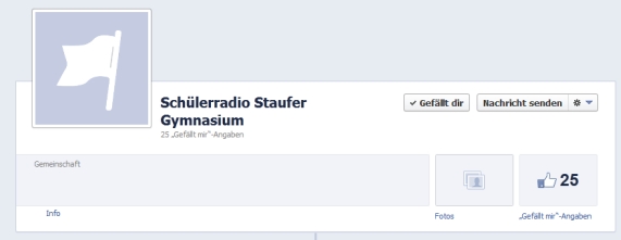 Hey Leute! Unser Schulradio hat zwischenzeitlich ebenfalls eine >>Facebook-Seite<<! Zwar ist noch nicht viel drauf zu sehen, aber das macht nichst! Sie hat ja auch einen Zweck, den sie ohne viel Schnickschnack erfüllen kann!